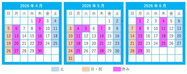 4月~6月営業日カレンダーです。